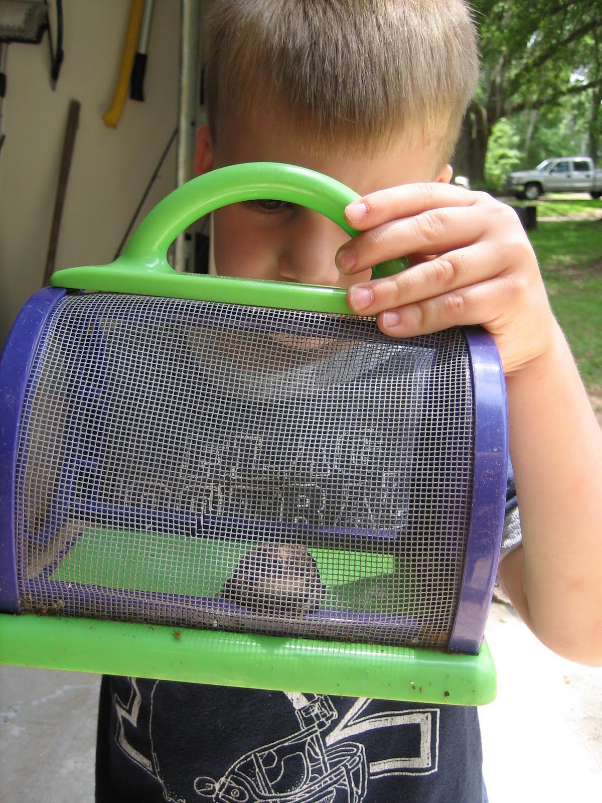 John Daniel had his friend, Cooper, over to play last week. I think Cooper was John Daniel's first real friend. Cooper is almost exactly one year younger but they have a blast together. Ann, Cooper's mom, is one of my best friends so this works out in our best interest as well! Cooper was here for about 2 hours and in that time they caught a toad, put the toad in a bug box, played in the sand box, put all the matchbox cars in the sandbox, washed the matchbox cars off with the hose, got soaking wet, watched a movie, and ate tortilla chips on the couch! Boys are so fun!