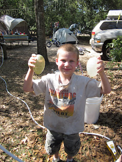 One of the best ideas that we had for entertainment during our camping trip was water balloon races/wars. The kids all had a blast...John included as you can see! They ran around and hit each other and then we had a water balloon relay! They had a blast! The birthday girl wasn't much into it but she had fun watching!